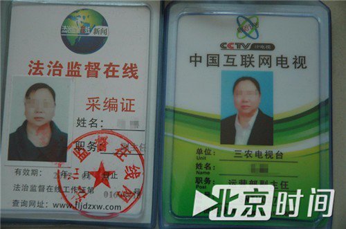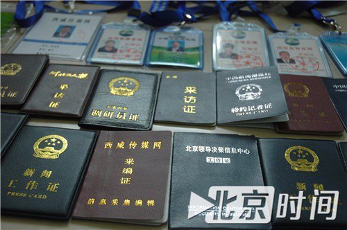 一個(gè)持有多個(gè)“媒體證件”。圖/李英強(qiáng) 嫌犯多為親友關(guān)系 史興平,37歲,小學(xué)文化,無(wú)業(yè),阜城縣漫河鄉(xiāng)楊小莊村人。 如果不是被抓,史興平不知還要在村里要耀武揚(yáng)威多久。 漫河鄉(xiāng)以種植蔬菜瓜果聞名,兩年前,史興平還扛著鋤頭去西瓜地里除草,不知什么時(shí)候,村里人就聽(tīng)說(shuō)他成了記者,至于是電視臺(tái)還是報(bào)紙的記者,并沒(méi)人能說(shuō)清。 7月6日,史興平穿著藍(lán)色囚服、坐在審訊椅上敘說(shuō)著敲詐企業(yè)過(guò)程的畫(huà)面被央視曝光,至此,村民才知他是個(gè)假記者。 村民稱(chēng),史興平不務(wù)正業(yè),原本有個(gè)持家的好妻子,兩年前離婚走了,留下10余歲兒子跟著奶奶一起生活。 史興平近兩年一直在外漂著很少回村,一次喝酒后回村,借著酒勁要進(jìn)村委會(huì)喊廣播,被制止后罵罵咧咧的離去。村民們當(dāng)時(shí)就懷疑,就這素質(zhì)不知怎么當(dāng)上的記者,遲早會(huì)出事。 “小平很少回家,究竟在外干啥也從不對(duì)我說(shuō),只是偶爾回來(lái)給我二三百的生活費(fèi)。”史興平年邁的母親告訴北京時(shí)間“暴風(fēng)眼”(微信號(hào):btime007)。 面對(duì)警察的訊問(wèn),史興平透露,自己的“轉(zhuǎn)型”是從結(jié)識(shí)賈瑞開(kāi)始的。 賈瑞和馬林為該團(tuán)伙的主要成員,兩人從事媒體工作達(dá)10余年之久,自稱(chēng)“資深媒體人”。 馬林供述,之前曾在媒體做過(guò)發(fā)行工作,對(duì)新聞媒體有一定了解,也積累下許多媒體和社會(huì)人脈關(guān)系,對(duì)外一直自稱(chēng)記者,時(shí)間久了大家誤以為她就是真記者,有時(shí)就連自己都深信不疑。 因長(zhǎng)期在本地作案,與較多企業(yè)負(fù)責(zé)人形成相對(duì)熟絡(luò)關(guān)系,不便親自出面,于是,兩人轉(zhuǎn)而指使成員作案。 史興平在和賈瑞學(xué)習(xí)“采訪(fǎng)業(yè)務(wù)”后另立門(mén)戶(hù),通過(guò)中國(guó)新聞播報(bào)社名義,四處網(wǎng)羅人員建起了自己的隊(duì)伍。 負(fù)責(zé)該案件的警官?gòu)垈虮本r(shí)間“暴風(fēng)眼”介紹,該團(tuán)伙由三個(gè)小團(tuán)伙組成,小團(tuán)伙成員相對(duì)固定,多以相熟程度、親緣關(guān)系結(jié)伙,文化程度普通不高。 第一小團(tuán)伙史興平、趙桂風(fēng)、張強(qiáng)、申名、杜東、孫友等11人組成;第二小團(tuán)伙馬林、宋軍等5人組成;第三小團(tuán)伙賈瑞、王強(qiáng)等人組成。 其中馬林、宋軍是一對(duì)“母子兵”;團(tuán)伙成員史興平、張強(qiáng)、孫友、申名、杜東、賈瑞曾有搶劫、盜竊等犯罪前科,孫友、杜東曾是獄友。 辦案警官?gòu)垈榻B,團(tuán)伙中成員文化水平普遍是小學(xué)或初中,僅有一名年齡最小、學(xué)歷最高的李光,大學(xué)畢業(yè)后因未找到合適就業(yè)單位,加入該團(tuán)伙。